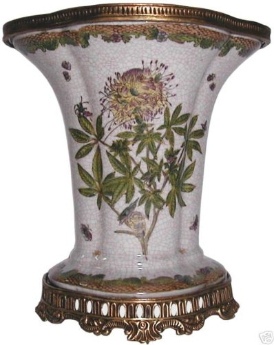 Porcelain Vase with Hand-painted Leaves and Brass Handles - Chinaware Review