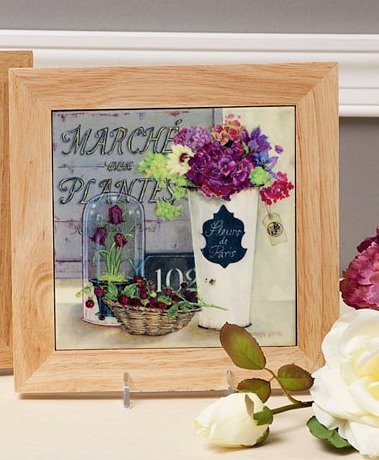 Flower Pot Pretty Framed Tile is measuring 8w x 8h x .75d. Made of solid wood with predrilled keyhole for easy wall mounting. Framed tile comes with 6w x 6h ceramic gloss tile attached to the wood frame.