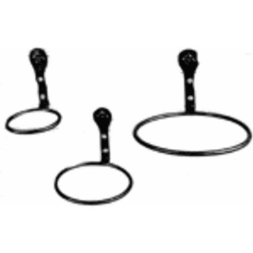 6-Inch flower pot ring; for clay or other flower pots with rims. Made of wrought iron; black powder coated.