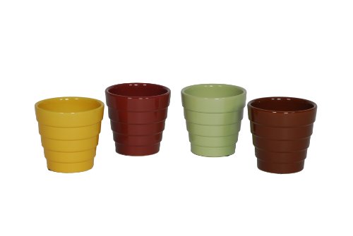 Glazed Ceramic Pots, Set of 4 Assorted Colors - 5.25" diameter x 5.25" tall Review